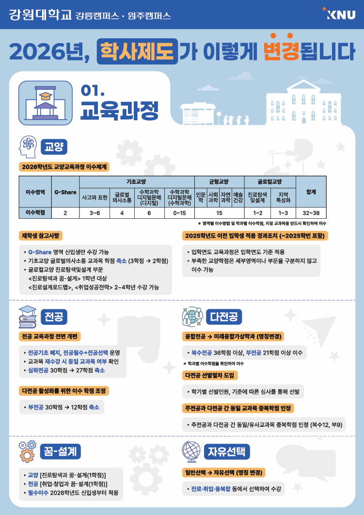 통합 강원대학교 교육과정 및 학사제도 안내 인포그래픽 배포